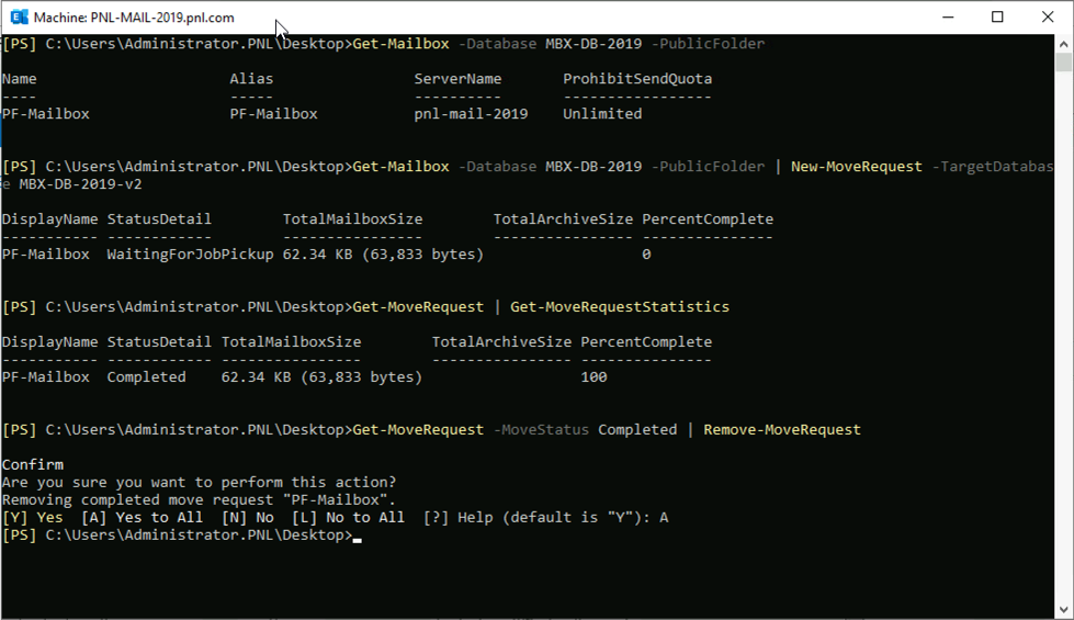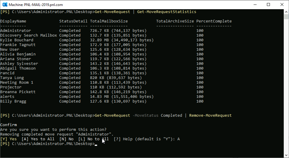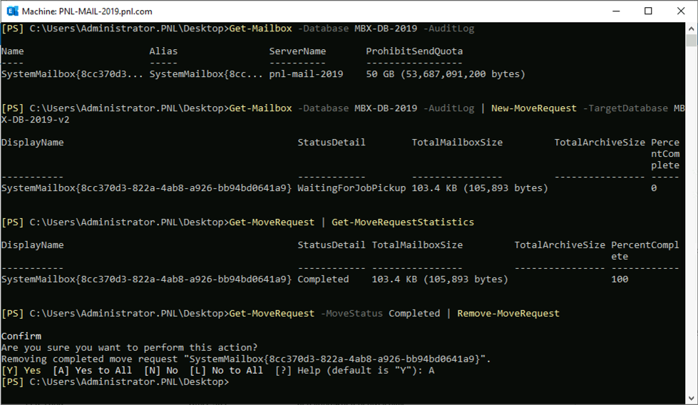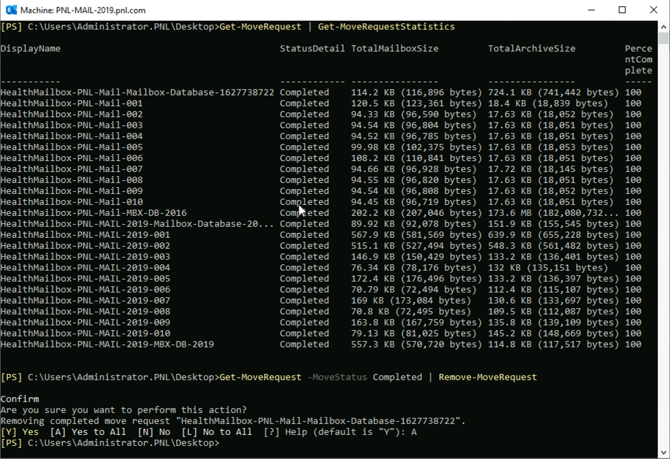 Get-MoveRequestStatistics -MoveRequestQueue Target Database Name4. 완료되면 다음과 같이 이동 요청을 제거해야 합니다.